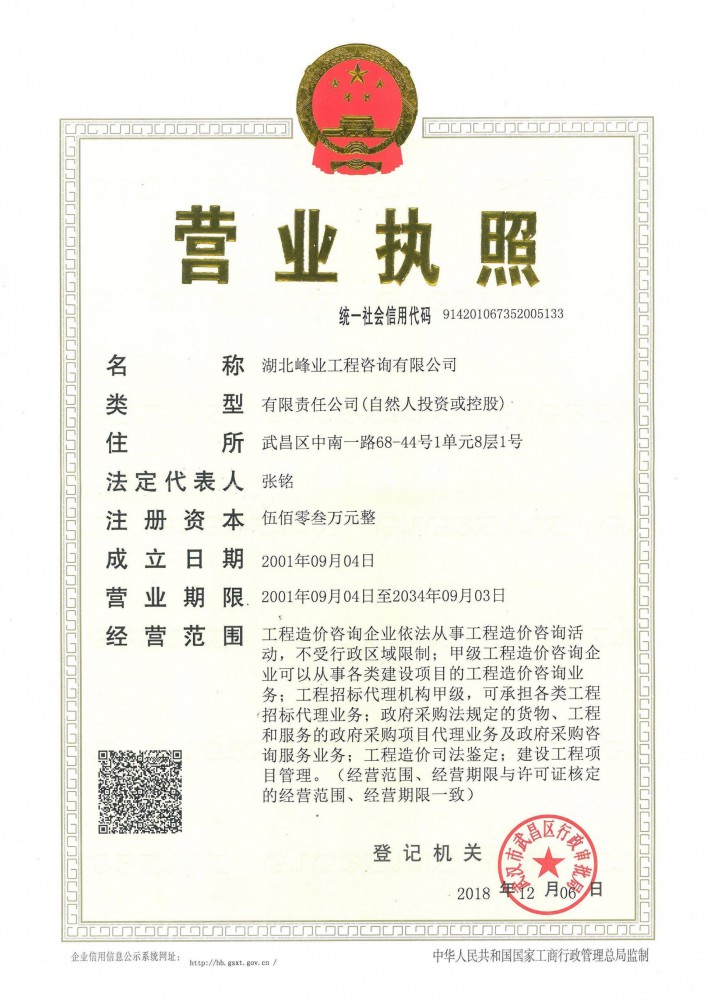 湖北峰業工程咨詢有限公司,成立于2001年9月,注冊資金500萬元,是中華人民共和國住房和城鄉建設部批準的甲級工程造價咨詢企業和甲級招標代理機構及湖北省財政廳批準的乙級政府采購代理機構,公司現有專職員工55人,其中高級職稱6人,中級職稱12人,國家注冊造價工程師10人。